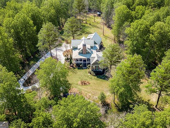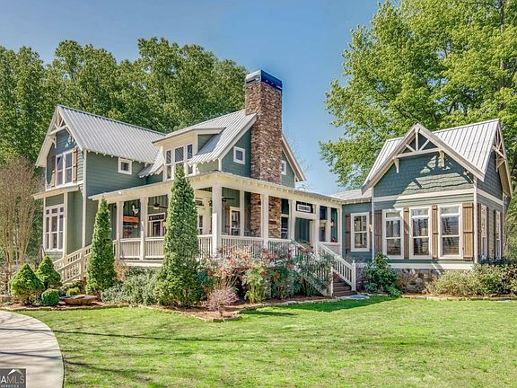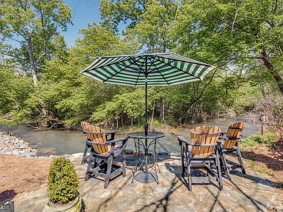 STUNNING SOUTHERN LIVING DESIGN WITH CREEK FRONTAGE AND MOUNTAIN VIEW! This architecturally designed masterpiece captures timeless Southern charm and modern comfort on one of the most breathtaking creekfront settings in North Georgia, offering 3.31 private acres with 1,200 feet of pristine Boardtown Creek frontage and year-round mountain views. The grounds are extraordinary with a creekside stone courtyard, gazebo, she-shed, garden area, and wooded backdrop that create a true sanctuary. Inside, the home radiates warmth and character with stunning custom trim work, three fireplaces, and inviting living spaces throughout. The well-appointed kitchen features an enormous island, brand-new GE Cafe Collection appliances, abundant cabinetry, a walk-in pantry, and a dining area with views of the creek. The living room exudes comfort and charm with a wood-burning fireplace, while a gentleman's library with fireplace and built-ins sets the stage for a quiet read or evening nightcap. The primary suite on the main level offers his-and-hers closets and an "oh la la" bath with a corner soaking tub. Powder room and laundry also conveniently located on the main floor. Upstairs, the fourth bedroom doubles as a gathering room with fireplace. The detached two-car garage includes a large finished bonus room above-ideal for a home office, studio, or craft space. Enjoy true Southern living while sipping sweet tea on the beautiful wraparound porch overlooking the picturesque property. No worries about power outages with the whole-house generator, plus fiber internet, paved road access, gated entry, and no HOA. Perfectly situated between Ellijay and Blue Ridge, just minutes from Whitepath Golf Course, Roo Vineyards, and Cress Creek Farm. Full-time residents age 65 and older are exempt from school tax. (FURNISHINGS Available on separate bill of sale.)