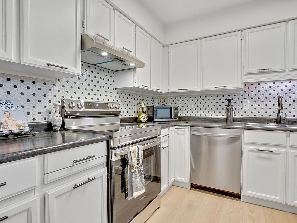 Discover modern, top-floor living in this bright, south-facing condo. Recently renovated, it boasts new wide plank waterproof laminate flooring, designer colours, and a kitchen with new stainless steel appliances and a cozy built-in banquette. Enjoy the spacious living room with an electric fireplace, formal dining with on trend feature walls, two generous bedrooms, primary with walk thru closet with custom built-ins to stylish bathroom. Plus, the building is pet and smoke-free, includes heat and hot water in the strata fee, and has convenient underground parking. Located near the hospital, cancer center, shops, and dining, this 55+ community offers comfort and convenience.