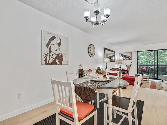 Top-floor livingBright south-facing condoDesigner coloursCozy built-in banquetteElectric fireplaceFormal diningTwo generous bedrooms