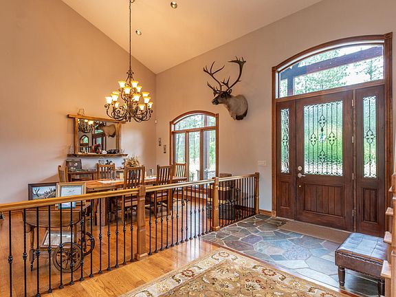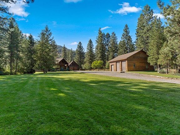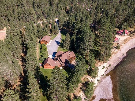 Find your retreat! 4 Bdr, 4 Bth lodge home, where luxury meets rustic charm. Nestled on 10 acres on the Kettle River, the home is surrounded by natural beauty. Inside, you'll be greeted by a grand, open floor plan, the focal point of the great room is a magnificent two story fireplace. Three en-suite bedrooms add comfort and privacy. The expansive gourmet kitchen is a chef's dream, with commercial-grade appliances and ample counter space for culinary creations. Custom hardwood floors lend an air of elegance and warmth. Property Includes an oversized 2-car attached garage, and 4-car detached garage/shop. Outside, find a mix of manicured lawn, and trees. Enjoy Mature fruit trees/garden, fishing and swimming right out your back door. Owner Financing 600,000 down, 5%, 15yrs