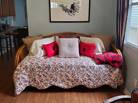 Private fenced yardFully furnished bungalowFold-out futon couch