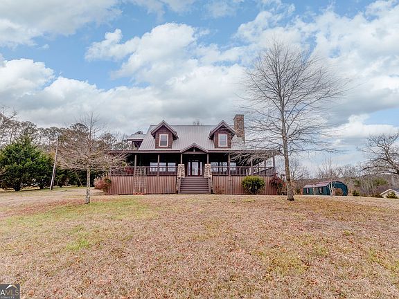 7 +/- acres of country living with hundreds of feet of creek frontage. Minutes from town. Model schools. Custom built 6"x12" square True Logs with dovetails. Maple cabinets with cranberry finish. Granite countertops. Two-story great room with stone fireplace. Laundry room with antique door. Primary bedroom suite upstairs with private balcony. Ample storage. Loft/office area. Wrap around porch. Raised garden beds. Detached two-car garage and outbuilding. New HVAC. New Water Heater. **Property is in the process of being resurveyed. Acreage is not expected to change.