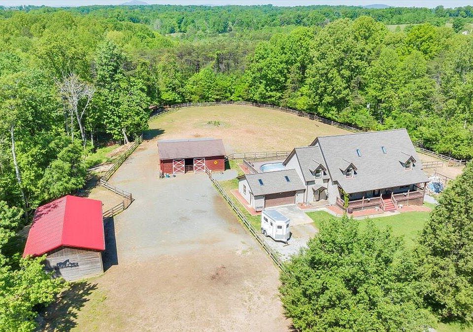 Nestled in the heart near Smith Mountain Lake on an expansive 9.41-acre paradise with a backdrop of sweeping natural beauty, this approximate 4784 sqft (Including unfinished storage area). home has so many valuable upgrades, and is a haven of rustic luxury and endless outdoor potential. Just 8 miles from the free boat access, Scruggs #8, on Dudley Amos RD. Horses are permitted, adding to the country charm and allure, and only 4 miles from the town center. The house features 4 bedrooms and 3 full bathrooms, and this idyllic retreat offers meticulously designed living spaces, imbued with loads of light and open spaces. Notable highlights include New Primary HVAC in June 2023, Pella Windows, Low Maintenance Exterior, Trex Decking around the 18'x32' Pool, New Well Pump and Pressure Tank in 2023, Forced Air Outdoor Wood Burning Fireplace and Boiler, a 24' x 36 barn with tack area, a wood shed, 24' x 40' haybarn, and 12' x 40' equipment barn. Make friends with your neighbors and with permission, you can access nearly 50 acres with trails for walking, or horseback riding.