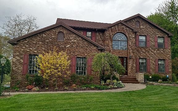 Nestled on a large country lot this brick 2 story Colonial offers an open kitchen & family room concept with a brick-faced fireplace! Towering 2 story entry with an open staircase greets you as you enter the home. Hardwood flooring through the kitchen & family room along with new wall to wall carpeting in the living room & dining room area. The spacious kitchen offers solid surface granite countertops & center island along with an eat in area with bay window/door leading to rear deck & beautifully landscaped gardens. The step down family room opens to the kitchen and includes a warm brick faced fireplace. The second floor offers a master suite with updated flooring & vanity along with 3 additional bedrooms and full bath. The lower level game room is newly carpeted and offers plenty of room for activities. The lower level also provides additional storage and full laundry.