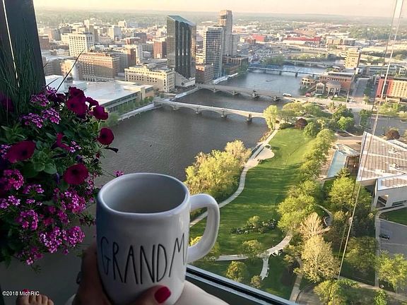 This unique and spectacular unit is situated on the 30th floor with panoramic views of all of downtown Grand Rapids, South, West & North! This unit has the largest balcony space of ANY high rise condo in Grand Rapids. Boasting 3 balconies with an unmatched 1600+ sq. Ft. of outdoor living space 30 floors above the city! The larger balcony comes with your own private 8 person hot tub! This condominium is a Visbeen Architect and Falcon Homes creation! A modern yet comfortable feel with 3 bedrooms and 3 full baths. Living room with fireplace, unbelievable full bar for entertaining your guests, 2 parking spots B20 & B22 ($77.00 per month) Storage # 191