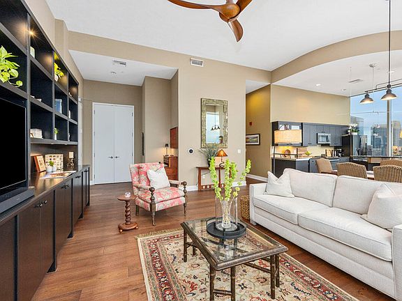 Experience downtown luxury at its finest with this magnificent 2-bedroom, 2-bathroom condo, boasting high ceilings, new hardwood flooring, and stunning floor-to-ceiling windows showcasing breath-taking views and sunsets. Perfectly designed for hosting and entertaining, the spacious Great Room is complimented by custom built-ins, while the open kitchen features updated appliances ideal for culinary creations. Retreat to the primary suite offering a serene oasis complete with en-suite and a large walk-in closet.