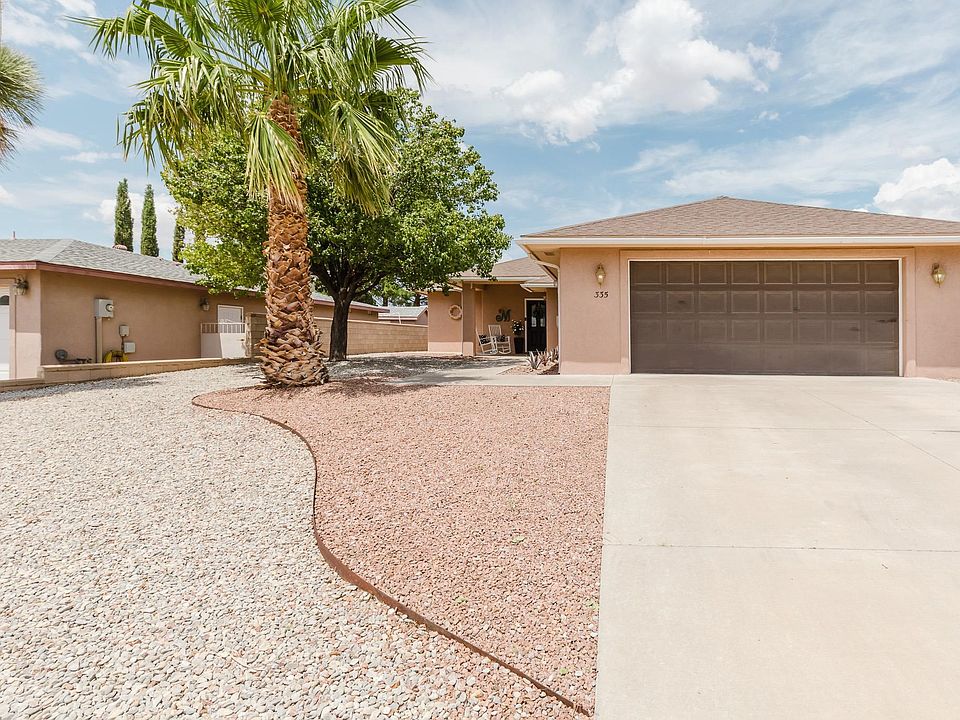This stylish 4 bedroom 2 bath home is located in the desirable golf course area with an easy commute to Holloman Air Force Base. Property features an open-concept layout connecting the living room, dining area, and kitchen. The kitchen boasts a center island, stainless steel appliances, and granite countertops. The bright, spacious living area is complete with a cozy peninsula fireplace. A covered patio, and large private backyard gives you the perfect spot for morning coffee or evening hangouts, and the 2-car garage adds plenty of storage and convenience. It’s charming and move in ready. What are you waiting for? Check out the 3D tour and call for your private showing today, and don’t forget to ask about the assumable VA rate!