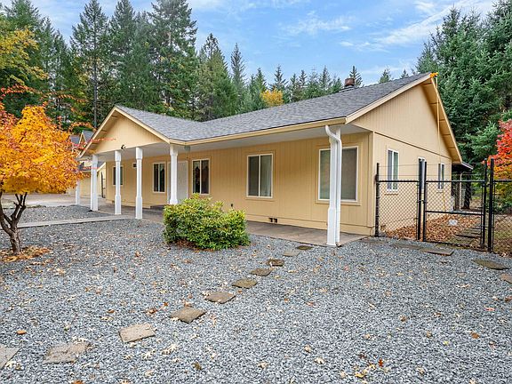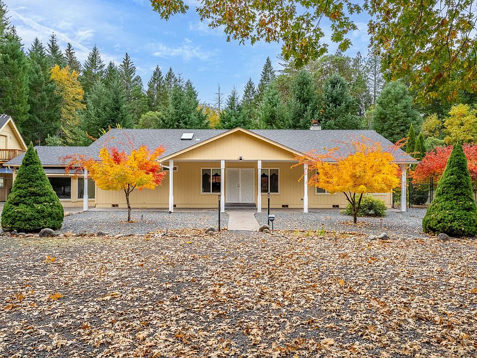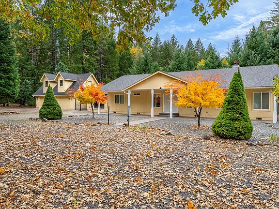 Welcome to your private retreat in Cave Junction! This stunning 3-bedroom, 2-bath home offers 2,365 sq ft of single-level living on just over 5 acres in the Idlewild neighborhood. Built in 2004, the property combines comfort, space, and privacy surrounded by beautiful natural scenery. The spacious floor plan features an open living area, large windows that fill the home with light, and a well-appointed kitchen perfect for entertaining. Outside, you'll find a detached 3-car garage with a bonus room above ideal for a studio, office, or guest suite, as well as 2 RV spaces with 30 amp and 50-amp hook ups! The fully fenced property adjoins BLM land, offering endless opportunities for outdoor adventure and peaceful solitude with a beautiful orchard and fruit trees. Experience the best of country living with modern convenience and room to grow! Recent updates include a new roof & skylights (4 months old). There is a whole home emergency backup generator with 250-gallon propane tank.