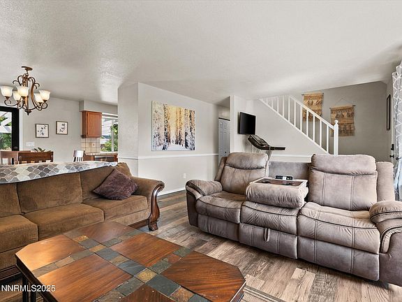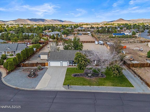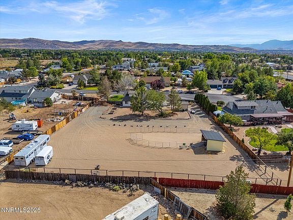 Country living just minutes from the city! This 1-acre Spanish Springs property sits on a quiet cul-de-sac, with no HOA and a full setup for horses and RVs. The home offers two primary suites, including a spacious upstairs retreat with double sinks, a walk-in closet, and a soaking tub with a large skylight. On the main level, you'll find another primary bedroom, a third bedroom, and a full bath. The kitchen features newer appliances, central A/C and heat are only a few years old, and the three-car garage provides ample storage and parking. The backyard is ready to enjoy with raised garden beds, a patio, and a complete horse setup, including panels with gate, a heated watering trough, panel-hung feeders, heavy mats, covered hay storage, and a run-in shelter. The arena is equipped with water, electricity, and remote-control lighting. With RV parking on both sides and shopping and schools just minutes away, this property offers the space and setup you've been looking for.