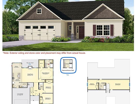 Step into your own private sanctuary with this master suite, located on the first floor, which features a generous bedroom with trey ceiling detail and expansive walk-in closet! The en-suite bathroom offers dual-sink vanity, walk-in shower, and relaxing soaking tub! Two more bedrooms with walk-in closets, a full bathroom, and Utility Room complete the downstairs. Upstairs you will find an enormous Bonus Room (23' x 12'), a 4th bedroom, and a full bathroom. Outside, enjoy the covered back porch overlooking your peaceful property—ideal for morning coffee or evening gatherings. A two-car garage completes this thoughtfully designed home.