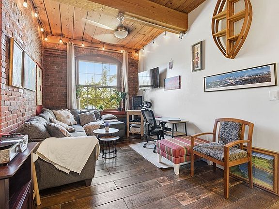 Welcome to Cypress Court! Full of historic charm and modern comfort, this lovely condo offers the best of in-town living. High wood ceilings, beautiful exposed brick, and large windows create a bright, welcoming space filled with natural light. The open layout features stylish wood grain tile flooring, an updated kitchen with granite countertops, and a refreshed bathroom. The cozy carpeted bedroom and convenient in-unit laundry make everyday living a breeze. Condo fees include central heat and A/C for year-round comfort. The building also features elevators for easy access and a spacious mailroom right at the entrance. With so much character and convenience, this is the perfect place to call home. Why rent when you can own?