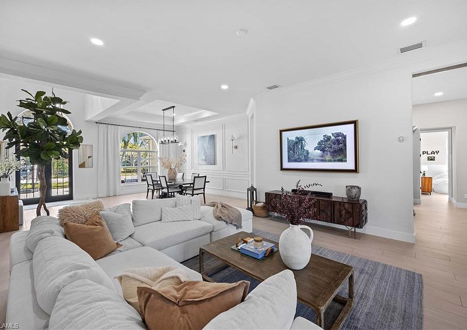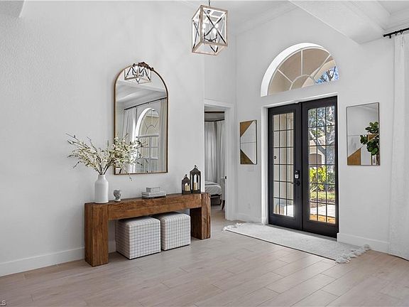Nestled in the serene northwest corner of Palm River, this stunning 4-bedroom plus den residence offers the perfect blend of luxury and functionality. Boasting a brand-new roof, a charming front-entry paver addition, and all-impact windows, this home is designed for both style and peace of mind. Inside, you’ll find tile flooring throughout, combining elegance and practicality for easy maintenance. The bathrooms showcase custom tiling, adding a touch of luxury, while the master bathroom is a true retreat with an oversized shower featuring dual shower heads, a separate soaking tub, custom cabinetry, and ample storage to meet all your needs. Other interior upgrades include tray ceilings, shiplap and wood accent walls, and designer finishes that exude sophistication. The kitchen is a chef’s dream, featuring top-of-the-line appliances less than two years old, paired with a new tankless water heater for ultimate efficiency. Step outside to your private oasis. The backyard features a saltwater pool with state-of-the-art LED lighting, a new energy-efficient variable-speed pump, and a heater to ensure year-round enjoyment. Complete with an outdoor shower, this space is perfect for relaxation and entertaining. Horse Creek Estates is a quiet, well-maintained community with low HOA fees that include lawn care, landscaping, irrigation, pest control, fiber optic TV and internet, and professional management. Enjoy the tranquility of no road noise and ample privacy while being just 10 minutes from Delnor-Wiggins State Park and Naples' world-class beaches.