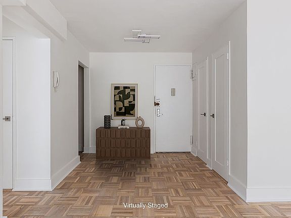 Perched on the ninth floor, this beautifully gut-renovated one-bedroom residence offers open, city views and abundant natural light. The apartment combines modern finishes with a sense of spaciousness and flow. The stunning renovation features a kitchen with full-size stainless steel appliances, custom cabinetry, and quartz countertops, while the airy living room is perfectly proportioned for both entertaining and relaxation. The oversized bedroom easily accommodates a king-sized bed and additional furnishings, with generous closet space throughout—including five thoughtfully designed closets—ensuring exceptional storage.