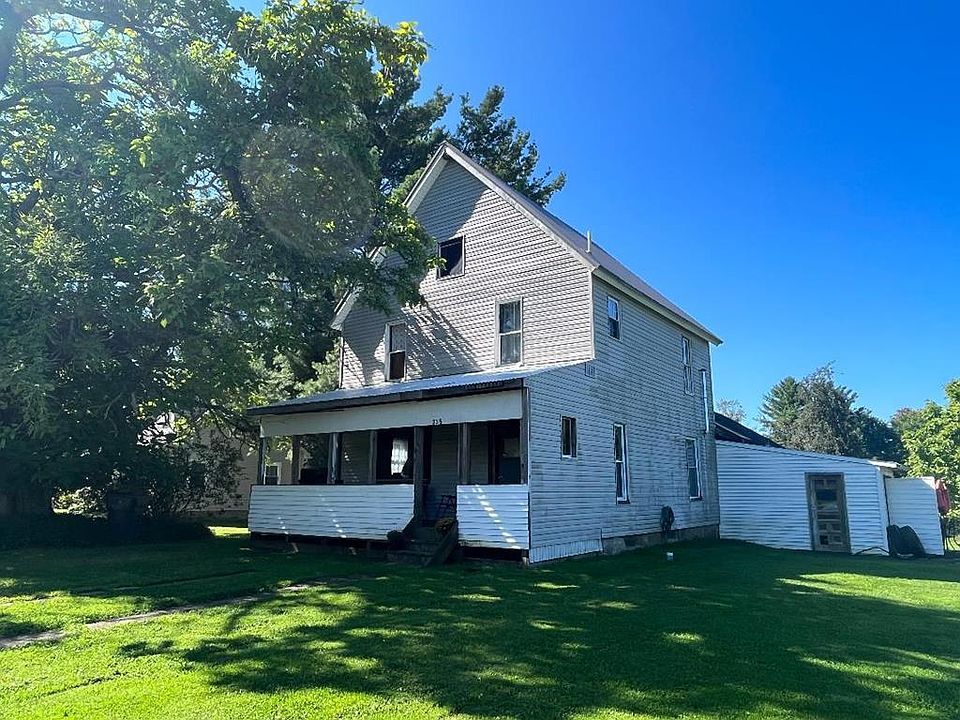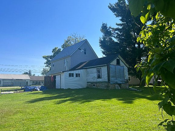 Situated on 10.8 acres, lightly wooded and mowed areas this 2 bedroom (potential for a third bedroom), 1 1/2 bath, 1,248 sq ft home is well on its way to being fully renovated on the interior with new wiring, forced air furnace, plumbing, insulation, flooring and some windows already done. Looking for someone to complete this project and make it their own. There is a living area, dining area and kitchen on the first floor and two bedrooms and a large open are that could be a third bedroom full bath up and 1/2 bath down. Public water and public sewer. Taxes are $2032.79.