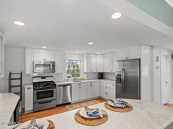 Come and enjoy this delightful 2 bedroom 2 bath ranch nestled in a prime location just off Rt. 70 and River Rd. in Pt. Pleasant. This home features an updated white kitchen with marble counter tops, stainless steel appliances and wine fridge. Great for entertaining! Hardwood floors in living room and kitchen were just refinished. One car garage with workbench and slop sink plus parking for 2 cars on the paver driveway. Timberline roof, central A/C Electric 200 amps. Beautiful level corner lot! Minutes to Pt. Pleasant Beaches, Boardwalk, Shops and Restaurants! This is a must see!