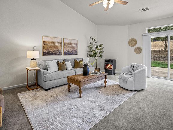 Located in the desirable Edgebrook Estates neighborhood, this well-maintained 3 bedroom, 2 bath home sits on a lot of over 1/4 acre which is one of the outstanding features of this property. Just minutes from downtown Ione and surrounded by nearby lakes for year-round recreation, the location is ideal for those who want the best of small-town living with easy access to outdoor activities. Inside, vaulted ceilings enhance the family room, formal living/dining area, and primary bedroom, creating a bright and open atmosphere. The kitchen features a cozy breakfast nook overlooking the backyard, while the family room is warmed by a pellet stove. The primary suite offers a walk-in closet and direct backyard access for added relaxation. Outdoors, the tiered backyard is designed for entertaining with a patio, plus a shed for extra storage. Additional highlights include a laundry room, new water heater and dishwasher, and a paved side area perfect for RV storage. This home offers a functional floor plan and a great location ready for you to make it your own!