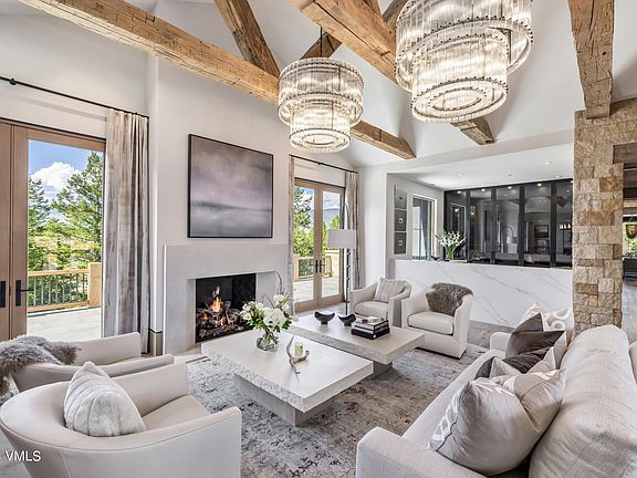 A beacon of perfection, on a secluded Bachelor Gulch precipice overlooking Beaver Creek Resort this extraordinary home offers unmatched privacy with sweeping views from the Gore Range and Game Creek Bowl to Red and White Mountain and Castle Peak. From this alpine haven, enjoy village-to-village ski-in/ski-out convenience in Beaver Creek, Bachelor Gulch, and Arrowhead, boutique shopping and dining, and easy access to Vail, Avon and Edwards. Designed with astute attention to detail, highlights are Smart Home tech, white oak hardwood floors, shadow reveal trim, automated window treatments, and ski home enhancements including a customizable ski room and lounge with heated patio and hot tub. An elevated drive wraps the terraced front entrance for a grand reveal. The entry invokes drama with oversized wood trusses, elegant lighting and fireplace, stone columns, and fully appointed bar with slab counters and towering lit glass cabinets. The east wing great room offers an extravagant kitchen with twin slab waterfall islands as the centerpiece for a divine color palate embracing stone accents and rich blue cabinetry. Kitchen finishes feature a Viking range, Miele, and Gagganeau. The stately dining room with climate-control wine display and luxurious living room showcase unobstructed views of Beaver Creek and access a heated patio with fireplace. The stunning west wing owner's suite features a double-sided fireplace