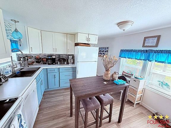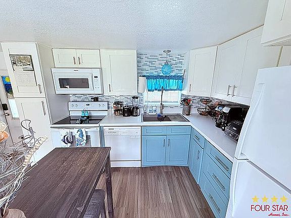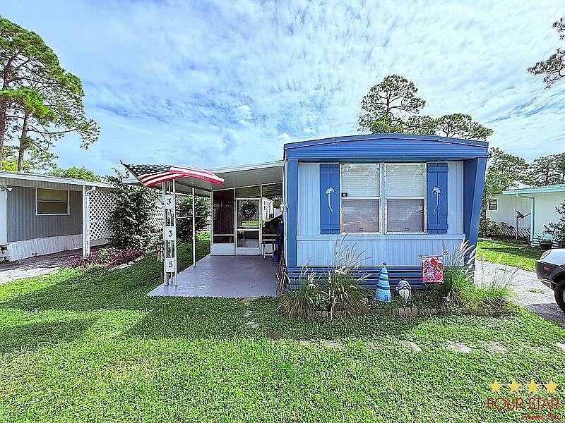 This super clean and charming home has been beautifully updated and is less than 10 minutes from driving on the beach. The kitchen shines with new appliances, complemented by a new washer and dryer for convenience. Fresh exterior paint gives the home excellent curb appeal, while inside you will find remodeled bathrooms with modern vanities and spotless shower stalls, newer flooring, and tasteful finishes. Enjoy peace of mind with tie-downs, window shutters, and gutters already in place. The home also offers central AC, a spacious storage shed, a screened porch, and a covered patio, perfect for relaxing outdoors. Partially furnished, it is ready for you to move right in. Lot rent includes sewer, trash, and lawn care in this pet-friendly community. Sellers are motivated, making this the perfect opportunity to own your own beachside retreat!