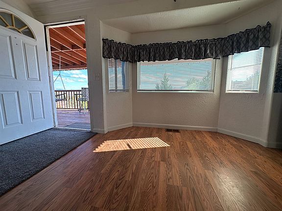 Great Features! Move-in ready dream home! This stunning 3-bedroom, 2-bathroom home offers the perfect blend of comfort and style with its thoughtfully designed split floor plan. Step inside to discover soaring vaulted ceilings and an inviting open-concept kitchen, dining, and living area that creates seamless flow for both daily living and entertaining. The heart of the home features a spacious master bedroom suite with an luxurious open master bathroom, while two additional bedrooms provide plenty of space for family or guests. Relax by the cozy fireplace in the second living room, which boasts an abundance of windows that flood the space with natural light throughout the day. French doors lead from the main living area to a covered back deck, perfect for morning coffee or evening gatherings, while the covered front deck adds charming curb appeal. The large, fully fenced yard provides privacy and security, ideal for children, pets, or gardening enthusiasts. Recent updates include a newer roof for worry-free living. This home sits on leased land, offering an excellent opportunity for homeownership at an attractive price point. Don't miss this rare combination of modern amenities, thoughtful design, and outdoor living space! Terms: Bank financing may be available on approved credit. Call today for additional details! For questions or to schedule your private showing, contact us Information is to be deemed accurate but not guaranteed. Buyer to verify all information.