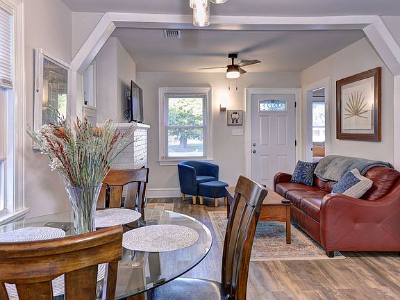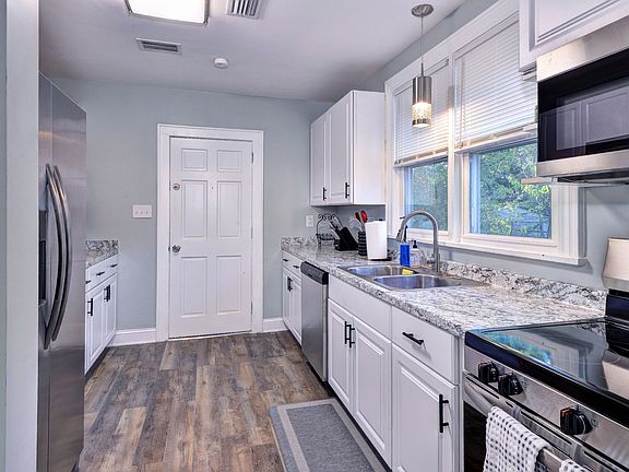 Complete with all the amenities one could need, just bring your suitcase! Fully stocked with new kitchenware/silverware, blackout curtains, washer/dryer, extra linens, coffee maker, air fryer, microwave, knife set, dishwasher, full fridge, cozy living room, dining table, smart TV, cleaning supplies, iron/ironing board, vacuum, cleaning supplies, general starting supplies.