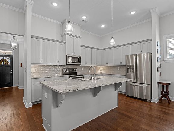 Sinclair at Crawford Creek just minutes to Evans! Beautiful 3 bedroom, 3 full bath home with over 2000 sq feet perfect for aging in place. Situated on a cul-de-sac lot with privacy fenced yard backing up to wooded space. Built in 2022 with HOA covering all front and back yard lawn care. Covered front porch opens to large foyer with guest bedroom 3 located just to the left with a private full bath. Open floor plan with spacious kitchen features granite, stainless appliances, an abundance of counter space and cabinets with deep pull out drawers for generous storage, and a walk in pantry. Kitchen island with sink overlooks dining area and living room. The living room with brick gas fireplace opens to screened porch area. The office, just off the living room hallway, includes French doors for privacy. The primary bedroom on the back of the house next to the office, includes private bath with an oversized double vanity, curbless shower with glass door, tile floors, private water closet, and spacious walk-in closet opening to laundry room. Laundry room also opens to another hallway near guest bedroom 2 and full guest bath. This home is handicap accessible. Additional features include mud bench at entry from double garage, built-in car charger, sprinklers front and back, privacy fence on front and side yard with wrought iron back fence for peaceful view of nature. Amenities include a community center, workout facility and access to swimming pool, park, walking trail, tennis and pickleball courts. Conveniently located to shopping, interstate, hospitals, schools, Fort Gordon and a short drive to Augusta.