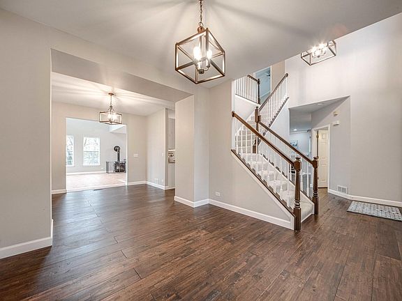 Over $35K in 2022 updates! An enchanting setting on a cul-de-sac with a scenic backyard pond with mature trees paired with an open floor plan makes this home memorable. Take a step into the stylish family room and relax next to your fireplace. Family room opens to the kitchen with an removable island/breakfast bar and ample cabinet space. Open floor plan links the living room, dining room and bonus room/sunroom in just the right ways and bathes the space with light. Vermont casting wood stove in the bonus room is perfect for staying warm on chilly evenings with a crackling fire. Master bedroom is a sanctuary offering tons of natural light, vaulted ceilings, and a walk-in closet. Ensuite is just as inviting featuring double sink vanity, whirlpool tub and separate shower. Three additional bedrooms, along with a second full bath are on the second level, as well as the loft with a built in workspace. House boasts of water views from multiple bedrooms. The beautifully finished basement boasts a game room/recreation room, an additional bedroom and has a full bath at this level. The backyard is your outdoor oasis with a brick paver patio, fire pit and pond and can be accessed via a ground level walkout through the basement. The house features tons of finished storage space with shelves on all three levels. The oversized two-car garage is fully finished. This home really epitomizes luxury living - your luxury living!