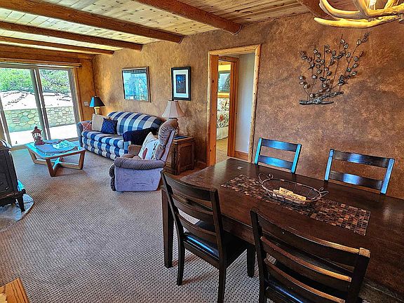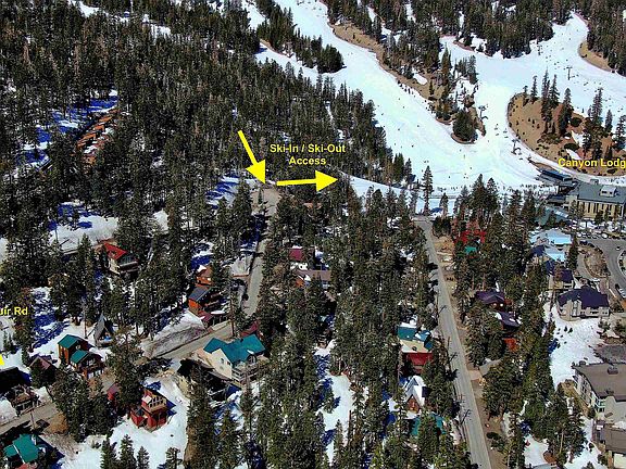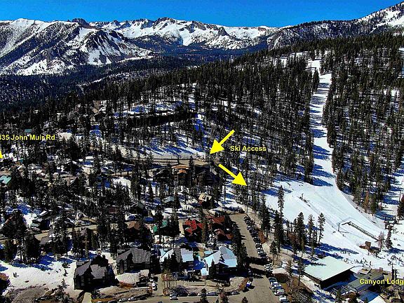 Located in the Timber Ridge Estates neighborhood just above Canyon Lodge, this beautiful 3BD+Den, 3BA mountain home features a tranquil setting amongst towering pines, w/ direct ski-in/ski-out access only a half block up the street, generous outdoor living spaces, an attached 2 car garage and quality upgrades throughout. The 1688sf of living space offers a blend of mountain & rustic charm, anchored by modern amenities and features you’ll truly appreciate. Recent upgrades in 2025 include a new 50-year metal roof, a brand new energy-efficient hydronic forced-air heating system, a newly installed electric panel, upgraded seismic retrofitting under the entire home, a new propane water heater and more. Plus, all windows and sliders now throughout are all dual pane vinyl windows. Sit back and unwind in the living room on those chilly winter nights and watch the stars pass by as you relax alongside the cozy & efficient pellet stove. The updated kitchen is light and bright, offers lots of storage, utility and has plenty of counter space w/ a butcher block island for those big gatherings. Just off the living & dining room is the guest bedroom and a nicely appointed guest bathroom. Upstairs you'll find the dual en-suite bedrooms, both with their own gas log fireplaces, upgraded attached bathrooms, vaulted wood ceilings and private balconies to take in the gorgeous mountain views. The den/office/flex space upstairs adds utility and is great for extra sleeping capacity, an office, media room or even a 4th bedroom. Large outdoor Trex decks have all new custom railings and posts and is perfect for enjoying a summer BBQ, morning coffee while taking in the views, or just watching the sunset colors fade. This home is an ideal getaway and a turnkey mountain retreat with super convenient access to world-class skiing, mountain biking and hiking trails. Sold turnkey and fully furnished, this home is ready for you to make it your own! Contact agent for more info or to arrange a showing.