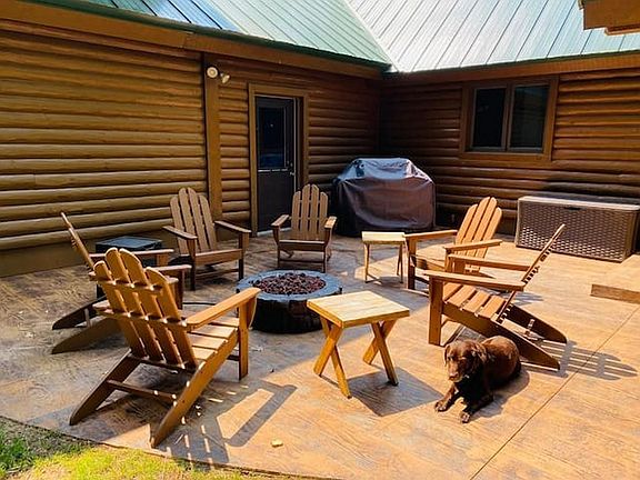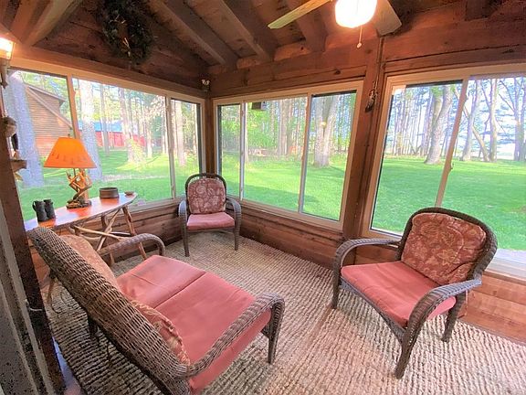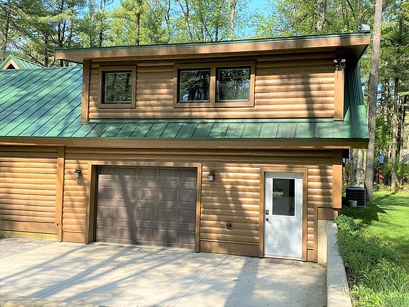 Little Limberlost: Log cabin lake hideaway with bonus apartment/guest quarters on a 1.34 acres wooded setting. The main house offers 2 bedrooms, two full bathrooms, and an open concept living room & kitchen that leads to an enclosed sunroom with a finished 3.5 car attached garage with workshop. There is an abundance of storage and closets. Many recent updates include: fiberoptic high-speed internet, new insulated sun room windows, HVAC, water heater, water softener, dishwasher, gas range, microwave, washing machine, hardwood floors, bath fixtures, kitchen fixtures, fresh paint throughout, exterior lighting, stamped concrete patio, landscaping, driveway surface and the additional garage with apartment. The apartment is approximately 500 SF and features one bedroom with built-in platform bed, one full bathroom and an open concept living room with kitchenette. In the backyard you'll find a matching log shed/clubhouse, a stamped concrete patio, a sunny garden spot, shade throughout the day and a path that meets up with 150 acres of beautifully maintained, private community walking/jogging/MTB/xc-skiing trails. Residents and guests have full access to Pine Canyon Lake and the newly resurfaced tennis/pickleball/basketball court. All furniture and furnishings are available to purchase outside the sale of real estate except the live edge and antler lamps.