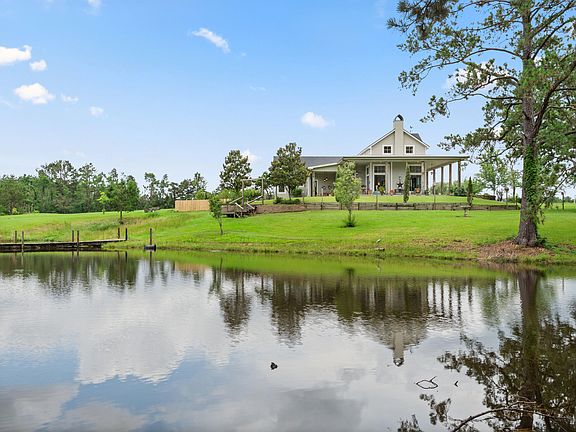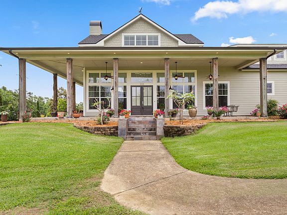 MODERN FARMHOUSE HOME on ACREAGE with a POND! The long DRIVE WELCOMES you to this SOUTHERN HOME ~ finished out in style! The WELCOMING ENTRANCE showcases the FABULOUS GREAT ROOM with GRANDE ceilings & a BEAUTIFUL gas FIREPLACE! BOASTING 4 bedrooms & 3 baths, a COOK'S KITCHEN with an ISLAND boasting a SOLID HEART pine top circa 1909. The MASTER SUITE is fit for a KING...and a QUEEN! Relax in the AIR MASSEUR soaking tub & a MASSIVE shower. The thoughtful design of this HOME, assisted with a ARCHITECT, promotes tons of STORAGE closets and SPRAY FOAM INSULATION to promote lower utility bills. The ENGINEERED foundation features helical piers & a post tension concrete slab for extra support. Visit with friends on the porch with views of the POND and ACREAGE in a SERENE setting accented with