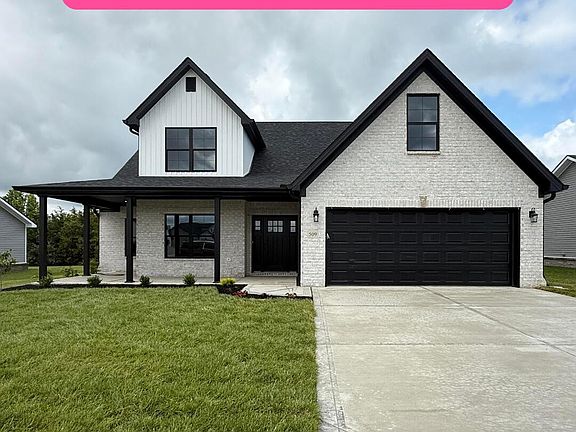 Brand new construction with stunning curb appeal! This modern farmhouse-style home features high ceilings in the main living area and a spacious open-concept floor plan designed for both everyday living and entertaining. The primary suite is conveniently located on the first floor, offering privacy and easy access. With a total of 4 bedrooms and 2.5 bathrooms, there's plenty of room for everyone to spread out. The exterior showcases sleek black accents and a large covered front porch — perfect for enjoying your morning coffee. Don't miss your chance to own this stylish and functional new home!