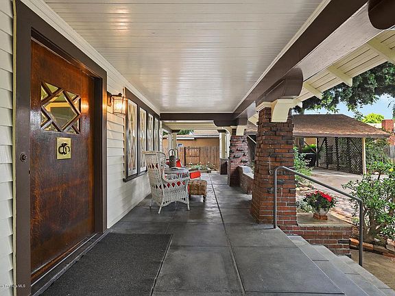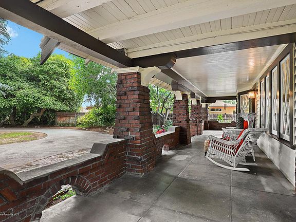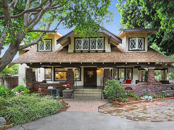Set far back behind majestic trees sits this beautiful 1908 Craftsman located in the desirable Country Club area of North San Gabriel. This architectural gem w/its original charm still intact just waiting for a new owner to appreciate & enjoy its true value. Wide covered porch w/clinker bricks columns. Large door opens to formal entry. Formal LR w/large windows, French doors & anchoring the space is what appears to be a painted Batchelder FP. Family room w/big windows, built-in bench seating &FP. Formal DR w/sliding pocket doors, coffered ceiling, wainscoting, built-in cabinets & French windows. Kitchen tastefully updated w/SS appliances. Breakfast nook w/French doors opens to the deck, BBQ grill, spa tub & pool. Main floor bedroom can be Master bedroom w/adjacent 3/4 bath. Master bedroom upstairs w/coved ceiling, French windows, built-in seating, walk-in closet, master bath w/classic pedestal tub & shower stall. Adjacent bedroom w/large windows & coved ceiling can be another Masterbedroom. 3rd bedroom w/large double-hung windows has full bath w/clawfoot tub. Enclosed sleeping porch currently used as a bedroom can be an ofc/study/den. Take a tour of this classic timepiece and imagine yourself enjoying its distinct architectural style for years to come.
