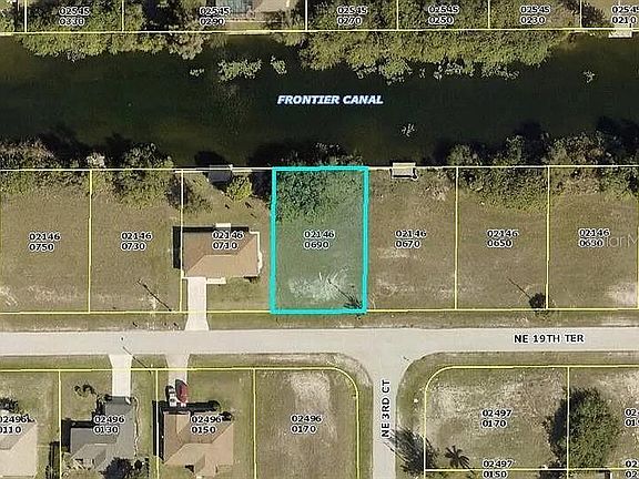 Great opportunity for investors or future residents! Two side-by-side canal-front lots for sale at 335 and 339 NE 19th Terrace, Cape Coral. These freshwater lots feature a seawall and direct boat access—perfect for fishing, kayaking, or relaxing by the water. Ideal for building your dream home or future development. The property includes fruit trees such as longan, sapote, and 10 palm trees. Quiet neighborhood near schools, shopping, main roads, and just 15 minutes from the beach. Buyer to verify all property details.