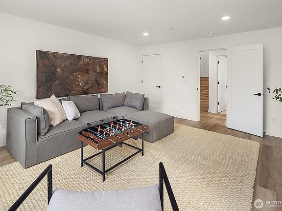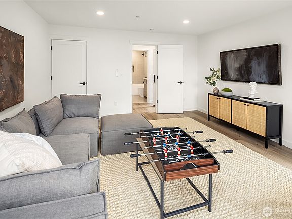 United Seattle presents this modern new home in the West Woodland area of Ballard. Main floor offers possible live/work option with spacious bedroom with separate exterior access plus full bath. Second level includes functional kitchen with complete appliance package & quartz counters. Easy flow into living room for entertaining, complemented by powder room perfect for guests. On the top floor, find your primary suite with spacious bath, including heated floors, and walk-in closet. Third level also includes office or nursery with its own private balcony. Roof deck allows low maintenance outdoor space with territorial views. Ample mini splits throughout for zoned comfort, plus thoughtful storage solutions. Off-street designated parking.