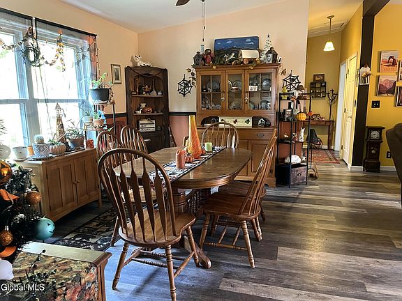 Come home to this three bedroom, two bath house with so many updates! Open LR/DR area, vaulted ceilings thruout, beautifully remodeled kitchen (2023), featuring Merillat cabinets with an abundance of storage, Cambria quartz countertops, and a stunning black walnut coffee bar area, skylight and eat in area w/slider to deck. New main bath (2025) w/skylight. Generous size primary w/full bath and skylight. Lifeproof vinyl plank flooring in kitchen, LR/DR, and hall. Basement has two finished rooms that can be used for an office, workout room, craft room...use your imagination. Also features laundry area w/slop sink and plenty of storage, a cedar closet, and a large unfinished area just waiting for your touch. Updates: new roof 2021, all upper level windows replaced 2017, wood furnace 2024, propane boiler 2015, solar panels 2015, water pressure tank 2022, new main line plumbing and leach field 2020. Large 1.55 acre lot. This house is just waiting for you to call it home!