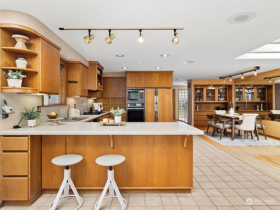 In the heart of Fircrest a 3 bed, 3 bathroom haven! Nestled near Fircrest Community Park(pool/tennis/playgrounds) & Golf Club. As you step inside, you'll be greeted by the natural allure of skylights & windows that shower every room with sunlight, illuminating the original hardwood floors that gracefully span the interior. Cozy up next to the double sided brick fireplace, gas fireplace downstairs or in one of the many seating areas. Original built-ins throughout, really showcase this home's timeless charm that includes the original bar. If that wasn't enough, your very own steam shower on main floor. The new garage door adds a touch of sophistication to the exterior, while the well-maintained tile roof ensures both beauty & longevity.