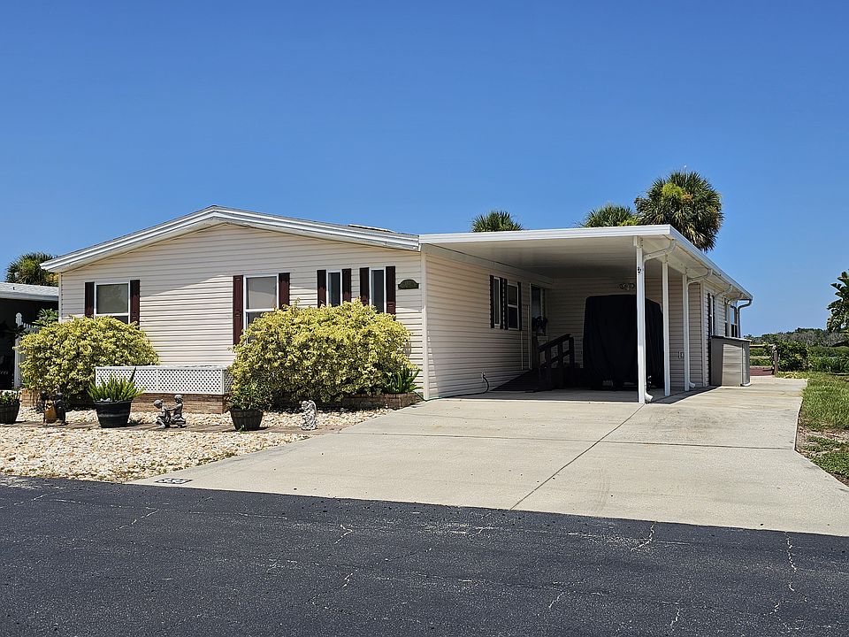 LOCATED IN BEAUTIFUL HACIENDA DEL RIO, A 55+ COMMUNITY! - This must see 2 bed, 2 bath home has the best views on the river. This is a rare opportunity to own a riverfront house. The home has a formal dining room with built in cabinets. The spacious primary bedroom and bathroom with lots of storage. Beautiful tile and vinyl flooring throughout the home. Open kitchen layout with an island and pantry closet. The eat-in dining area is next to the large windows looking out over the river. Next to that is a living area with windows on two sides facing the river. Another sitting area with a bar and opening to the kitchen gives additional seating. There is an all-season room off the kitchen area that has spectacular views and a door to the deck. The deck stretches along the back of the house and all-season room. A great place to sit and watch the boats, wildlife, and stars. Minimal yard work with decorative rock gardens. The driveway has been extended to make room for additional parking. There is a 12x12 shed for storage. Meet new neighbors and enjoy our active 55+ resort style living. This home is a must see, schedule an appointment to tour this home today.