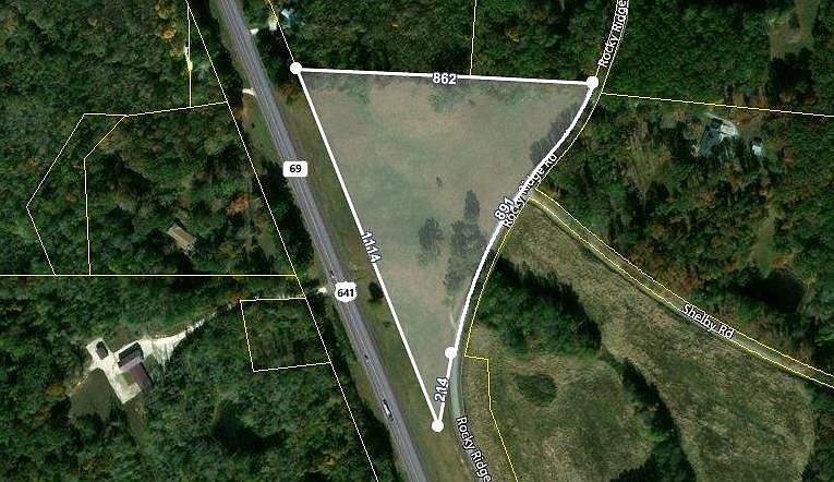 Commercial Potential! Property fronts Hwy 641 (1,114 feet) and Rocky Ridge Rd (891 feet). All utilities in place - electric/natural gas/water - original septic tank in place. Build your dream home or more than one home. Gorgeous rolling pasture with scattered shade trees located outside the city limits. Enter the property at either road where signs are posted.