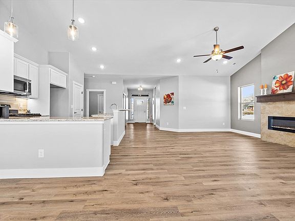 JOIN US SUNDAY JULY 30 FROM 11AM-4PM FOR A TRIPLE HOUSE OPEN HOUSE WITH PRIZES (3 X $100 gift cards and a chance to win a $250 Home Depot gift card!) Food truck will be on-site from 11-2 with BBQ! This is a beautiful new construction home designed for the way you live! A covered front porch flows through the entry into the living room with vaulted ceilings and open concept layout. A kitchen island is central to the home and provides seating and gathering space for entertaining. Enjoy the warmth and ambiance from the fireplace in the living room while enjoying ample natural light and the views of the surrounding Grand Mesa! Sizable walk-in pantry, granite counters, upgraded cabinets with soft close hinges, stainless steel appliance package includes microwave, gas range/oven, dishwasher and refrigerator! The home features beautiful luxury vinyl plank flooring for easy maintenance. The splendid master bedroom suite is enhanced by a walk-in closet and spa-like master bath with dual-sink vanity and easy step-in shower. You will love the easy access to your covered patio for outdoor activities, meals, and enjoying that Colorado sunshine! 1 year home warranty included! This home is complete and ready for you!