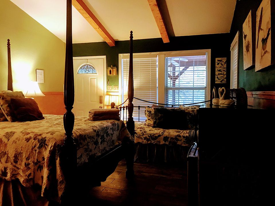 Lovely suite with a kitchenette and a small jacuzzi tub, ideal for a family of 4, secluded in the middle of the woods lovely views, private porch and outside sitting area with grill.