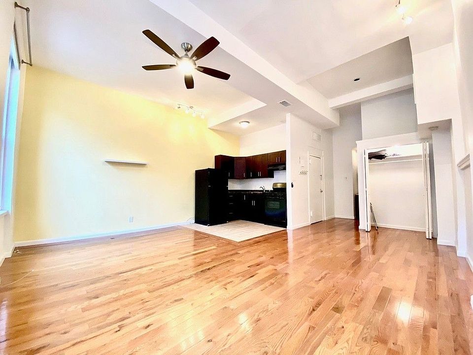 recently renovated! When you walk into this Loft Studio you will notice the 15ft ceiling height, oversized windows in this large bright studio on the parlor floor or a townhouse. Situated in a charming townhouse just a block away from the F G stop on Carroll St. New renovations include hardwood floors, a new kitchen with cabinets, countertops, appliances. There is an open kitchen with track lighting and ceiling fan. There is a large double size closet with overhead storage The bathroom is also new and modern with white subway tiles. This studio loft boasts tons of natural sunlight with its oversized windows and ceiling height. Central heating. Pets are on approval. Just off busy Court St and Smith St restaurant row where you will have tons of cafes, restaurants, bars, markets and shops.