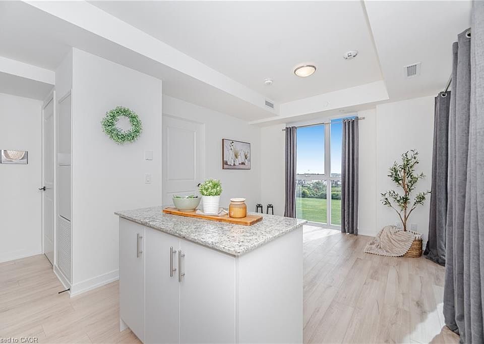Contemporary 1 Bedroom + Den corner suite with an open layout, Whirlpool kitchen appliances, island seating, and full-height windows. Enjoy unobstructed west views from your private balcony and a versatile den ideal for a home office or guest room. Includes in-suite laundry, underground parking, locker, and high speed internet at no extra cost! Building offers great amenities including a party room, outdoor terrace with BBQ area, and 2 AV charge stations. Located on the same level as the outdoor terrace and BBQ area for added convenience. Prime Oakville location close to shops, dining, highways, GO Transit, Sheridan College, and Oakville Trafalgar Hospital.