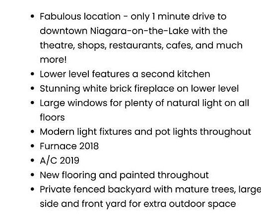 Be First!! All brick back split in a prime location, situated in the Heart of Old Town Niagara-on-the-Lake on a LARGE LOT. Please see photo 2 for features and upgrades. Total of 4 bedrooms, 2 new bathrooms, and attached garage with 220 volt. 2 kitchens, both with quartz countertops. The floors have been updated throughout and the entire home has been painted in neutral tones. The lower level is also finished with a separate entrance and 2nd kitchen, bathroom, bedroom, and living area. Perfect for investor or renovator looking for extra income or extended family space. The lot is large at 67.5 x 120 with wrought iron fencing and back patio area with mature trees. This home won't last as it's price to sell. Come see it today!