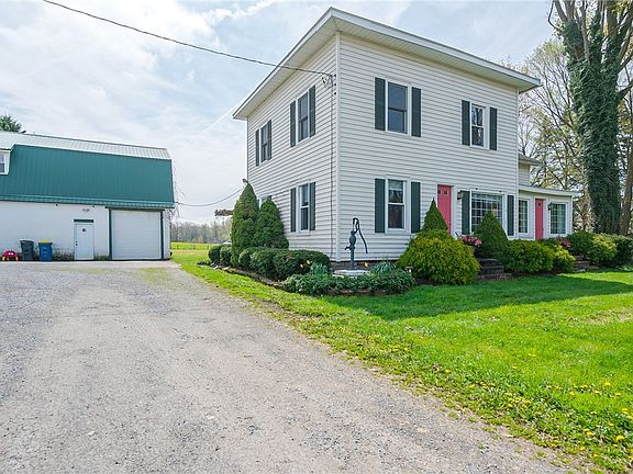 Enjoy the convenience of modern amenities and rustic charm that this 5 bedroom, 3.5 bath farmhouse has to offer. With over 3800 sqft plus additional living space in the finished basement, there is room for everyone. A spacious great room with vaulted ceilings leads to the back deck to enjoy the serene outdoor setting. The updated kitchen features custom cabinetry, granite countertops and a copper farm sink and leads to the formal dining room. On the first floor you will also find the primary suite with a sitting room and custom tiled bathroom with walk in shower and heated floors. The enclosed porch would make a perfect office space. The second floor has 4 more bedrooms and the third full bath. Situated on over 34 acres this property is a haven for horse enthusiasts and hobby farmers with a horse barn, pole barn, milking barn and 3 silos along with 5-6 acres of tillable land. All buildings have water and the horse barn currently has 2 matted stalls with automatic waterers, a covered run in and a Bar Bar A waterer for the electrified pasture. The huge pole barn provides storage or the possibility for indoor riding. The detached garage can hold 4+ cars with hay storage above.