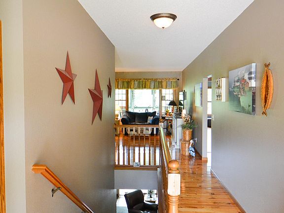 Experience country elegance in this exquisite one-level walkout home. The open floor plan features a stunning kitchen with Cambria countertops, perfect for culinary enthusiasts. Enjoy the serenity of a screened-in sunporch and a sunroom, offering ample natural light and beautiful views. The main floor primary suite provides a luxurious retreat, while the second bedroom and full bath, complete with a Jacuzzi tub, ensure comfort for guests. Both bathrooms are enhanced with tube lights for added brightness. The built-in hutch and Natural Red Oak flooring add classic charm, and the main floor laundry offers convenience. The lower level is a walk-out, featuring a chic kitchenette wet bar, complete with a mini fridge. This space is perfect for entertaining,. The wet bar provides ample counter space for preparing drinks and snacks, making it an ideal spot for gatherings and relaxation.There is one bedroom and a 3/4 bath, along with space for an office or a fourth bedroom, and an area perfect for a media room. The large utility room offers shelving for ample storage, new furnace to be installed prior to closing. The home backs up to a paved walking trail, providing a picturesque and accessible outdoor experience. This home is a perfect blend of style and functionality.