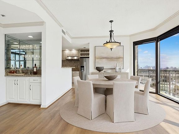 Great opportunity to live on the 15th floor at The Bristol Condominium and enjoy the spectaular views of both Downtown and Med Center area. Luxury, resort style living in the Galleria area ,The Bristol offers all amentities - 24 hour concierge, valet services to park your car, bring up groceries, etc., fitness center with recent equipment,heated pool and spa,party room for all your gatherings,tennis/pickle ball courts, on site management and maintenance staff, landscaped grounds with picnic tables, walking path. Quiet and private with just 4 condos on each floor. 1501 has been recently painted and features living/dining combo with wet bar area,hardwood floors, granite counters, floor to ceiling windows throughout and a 330 square foot wrap around balcony. Primary bedroom has 2 walk-in closets with ensuite bath. Open kitchen with breakfast/office area. Washer,dryer,refrig stay. 2 reserved parking spaces plus basement storage. Easy access to both highway 59 and Loop 610. Pet friendly .