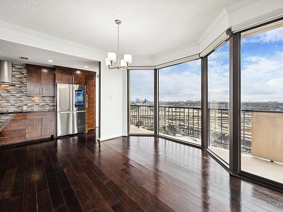 Soaring high above the city, this stunning 2-bed/2-bath residence delivers captivating panoramic skyline views and a rare 311 sq. ft. private balcony for seamless indoor-outdoor living. The bright, open layout features sun-filled living and dining areas connected to a beautifully remodeled chef’s kitchen with granite counters, extensive cabinetry, breakfast bar, dry bar, and recent appliances. Thoughtful updates include motorized shades, custom built-ins, fresh paint, designer lighting, and 2025 HVAC. Located in The Bristol—one of Houston’s premier full-service high-rises—residents enjoy 24-hour concierge, valet, fitness center, heated pool/spa, party room with pool table, gas grills, tennis/pickleball courts, pet park, and on-site management. Private parking included. A rare opportunity for luxury, views, and unmatched amenities in the heart of the city.