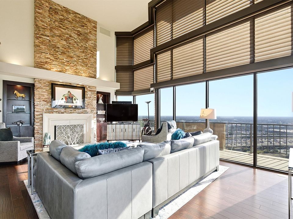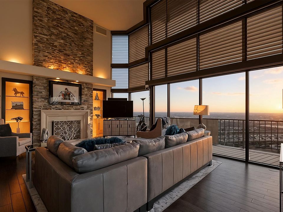 Indulge in luxurious high-rise living in this stunning 2-story penthouse perched on the 24th and 25th floors of The Bristol. Floor-to-ceiling windows and expansive wraparound balconies—accessible from every room—showcase breathtaking sunsets and sparkling evening skyline views. The first level welcomes you with an open-concept living and entertaining space, elegant formal dining room, and a Pullman-style kitchen with a breakfast area. A versatile downstairs bedroom, currently used as a media room/office, adds flexibility. Ascend the gorgeous spiral staircase to the extra-large primary suite featuring custom built-in storage, a spa-like ensuite bath with sauna, a walk-in closet, and convenient exterior access—available from both floors. This quiet, full-service building provides an exceptional lifestyle with 24-hour concierge, full-service valet, state-of-the-art fitness center, club area, heated pool, dog park, and rooftop tennis/pickleball courts. Includes 4 assigned parking spaces!