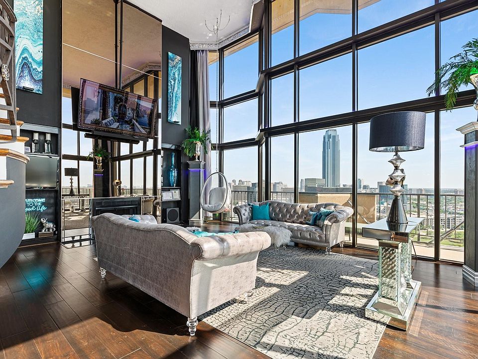 Welcome to this ULTRA CHIC 2-story penthouse on the 24th and 25th floor of the The Bristol by The Galleria. With an eastern exposure, you'll enjoy breathtaking sunrises through the 20' floor-to-ceiling windows allowing natural light to pour through every room while offering incredible skyline views of Downtown and Uptown/Galleria from the wrap-around balcony. This modernized 3 bedroom unit features bold interior colors, perfect for art enthusiasts, a unique open concept, custom modern lighting, quartz countertops, and updated hardware, gorgeous spiral staircase, plus convenient exterior access to the unit on both floors. This quiet building offers 24-hour concierge, full service valet, state-of-the-art fitness center, club area, heated pool, dog park and rooftop tennis/pickleball courts, 3 reserved parking spaces and a basement storage area. Conveniently located 4 blocks from the Galleria, 2 blocks from Water Wall Park, with easy access to restaurants, retail, and major highways.