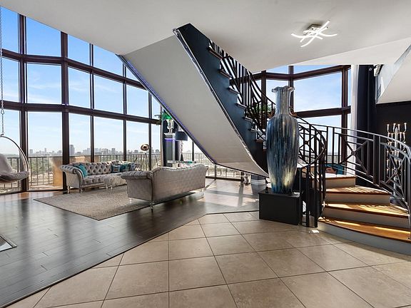 Custom modern lightingWrap-around balconySpiral staircaseQuartz countertopsEastern exposureBreathtaking sunrisesIncredible skyline views