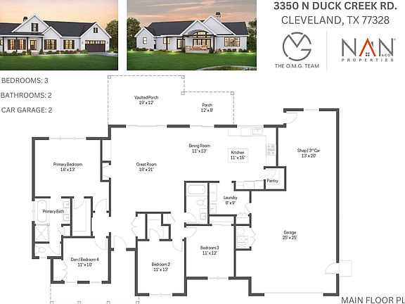 Set on a ½-acre homesite, the curb appeal shines with a covered front porch and classic farmhouse details. The extended covered back patio creates the ideal space for outdoor living, while a 3-car garage provides ample parking and storage.